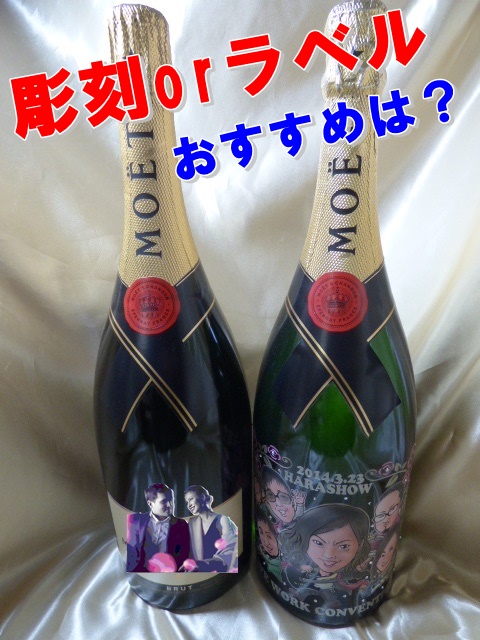 オリジナルシャンパンの彫刻とラベル。双方のメリット&デメリットから「果たしてどちらがおすすめなのか?」比較してみました。