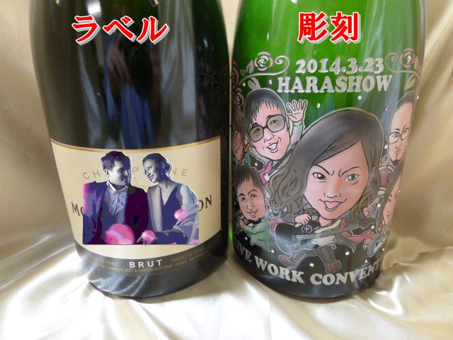 オリジナルシャンパン彫刻とラベルを比較してみました。